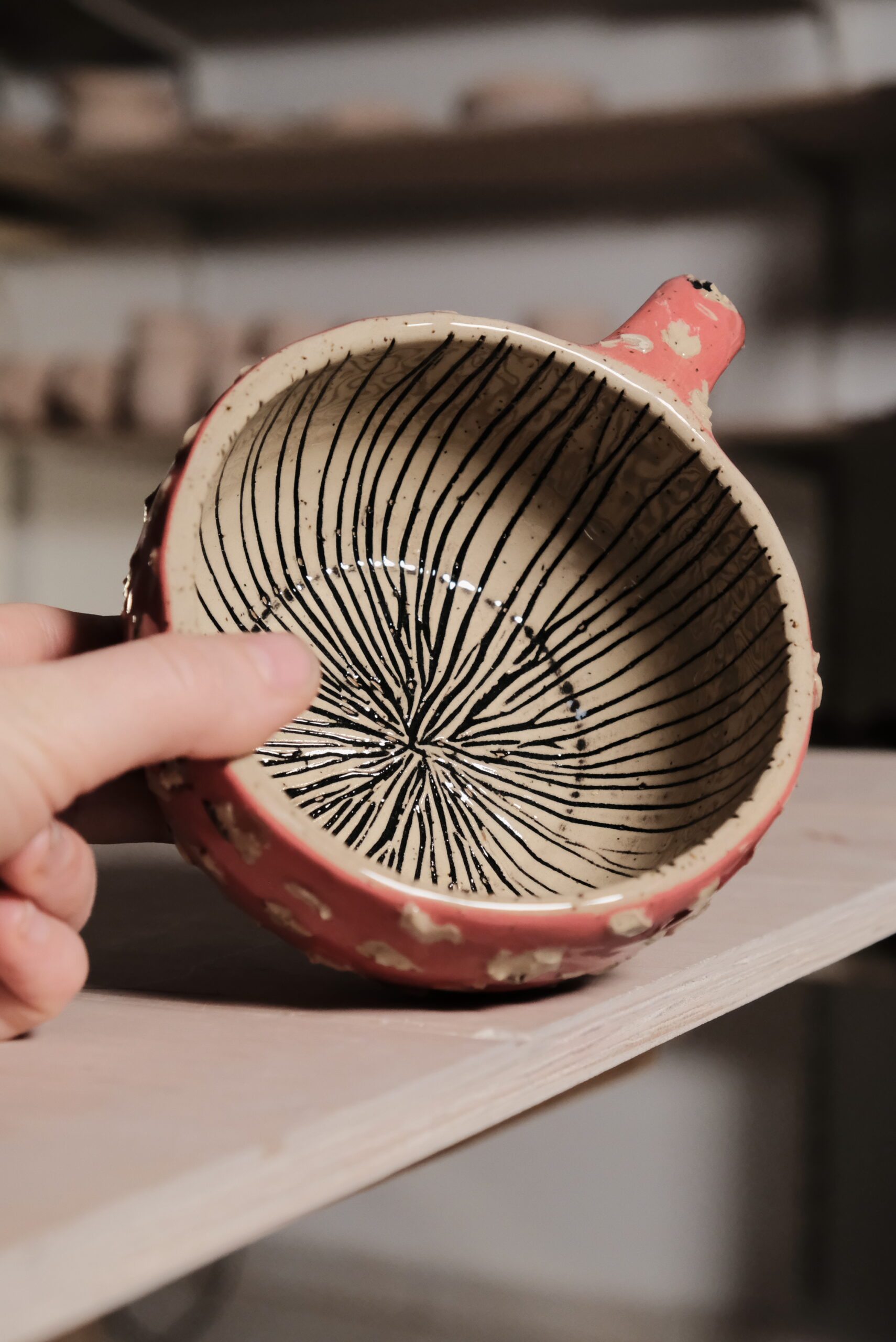 Ręcznie wykonany – toczony na kole lub metodą z płata, dlatego każdy powstały egzemplarz będzie delikatnie różnił się od siebie kolorem, wagą, rozmiarem, zdobieniem. To je wyróżnia. Niepowtarzalność.