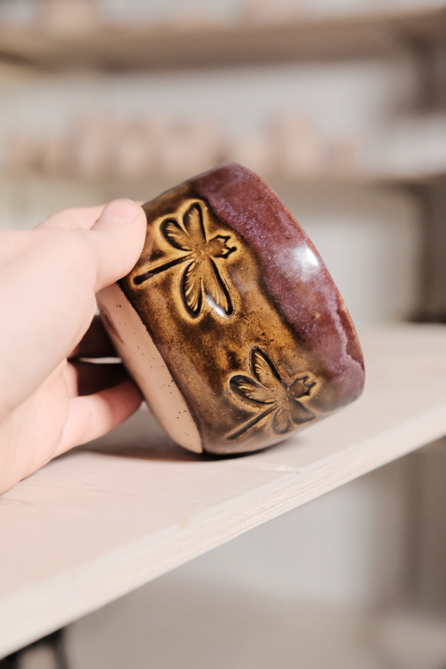 Ręcznie wykonany – toczony na kole lub metodą z płata, dlatego każdy powstały egzemplarz będzie delikatnie różnił się od siebie kolorem, wagą, rozmiarem, zdobieniem. To je wyróżnia. Niepowtarzalność.